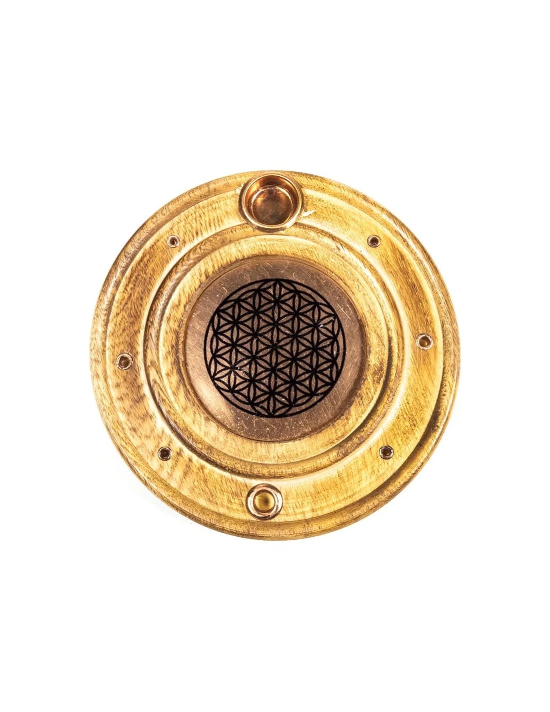 Incense burner sticks & cones, ornate with engraved Flower of life decoration.