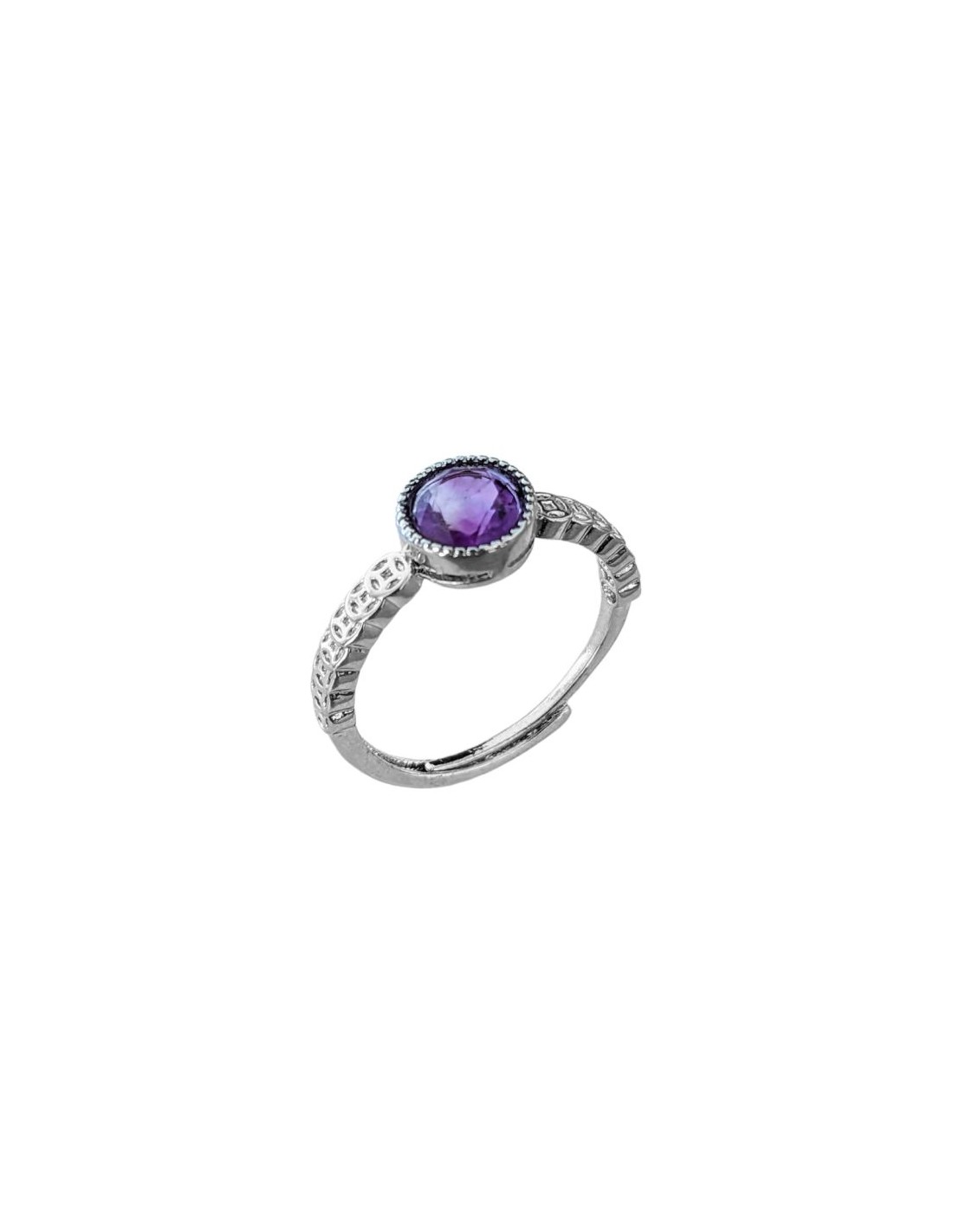 Ring with faceted Amethyst Quartz in white copper