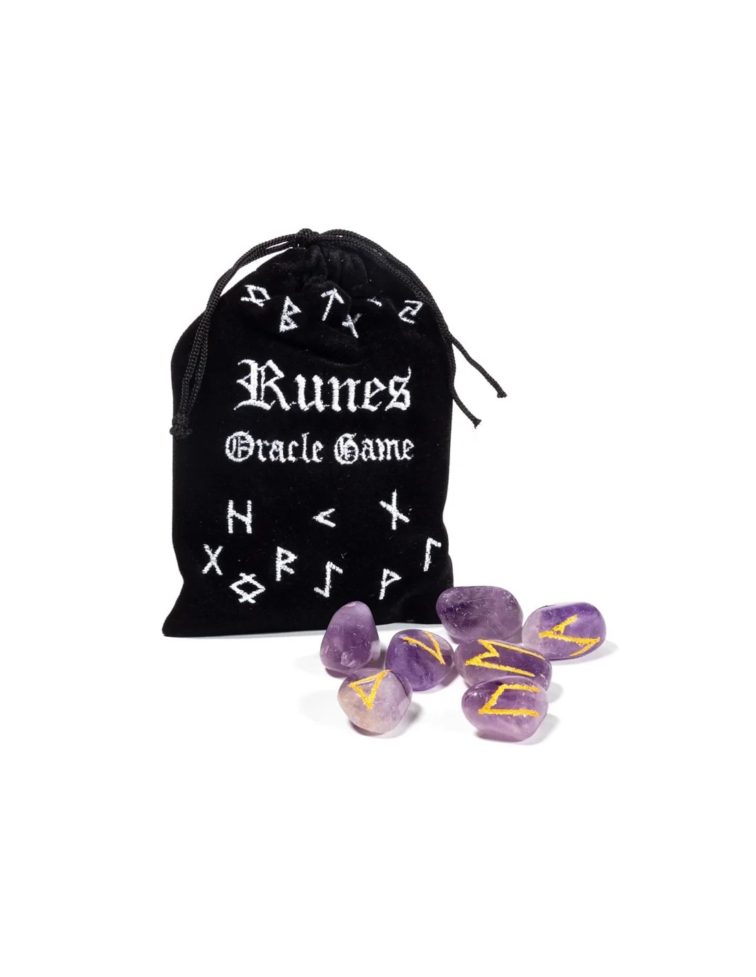 Amethyst Rune Oracle set in velvet bag