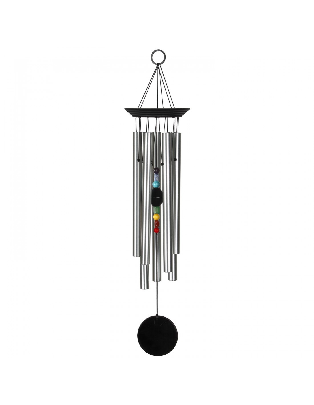 Woodstock Chakra Chimes combine color and sound to underscore the ancient meaning of the major energy centers of the human body. Eastern philosophy can be difficult for the Western scientific mind to assimilate, and yet, many of the Eastern claims are being proven scientifically as the time-honored truths that they are. According to the traditions, there are 7 basic chakras, which correlate to the 7 main nerve ganglia emanating from the spinal column, as revealed through modern studies of physiology. Each chakra location has a unique meaning, orientation and healing potential. Woodstock Chakra Chimes are intended to remind us of the strength of mind over matter and, through sound, give us a small window into the balance of the physical and metaphysical.