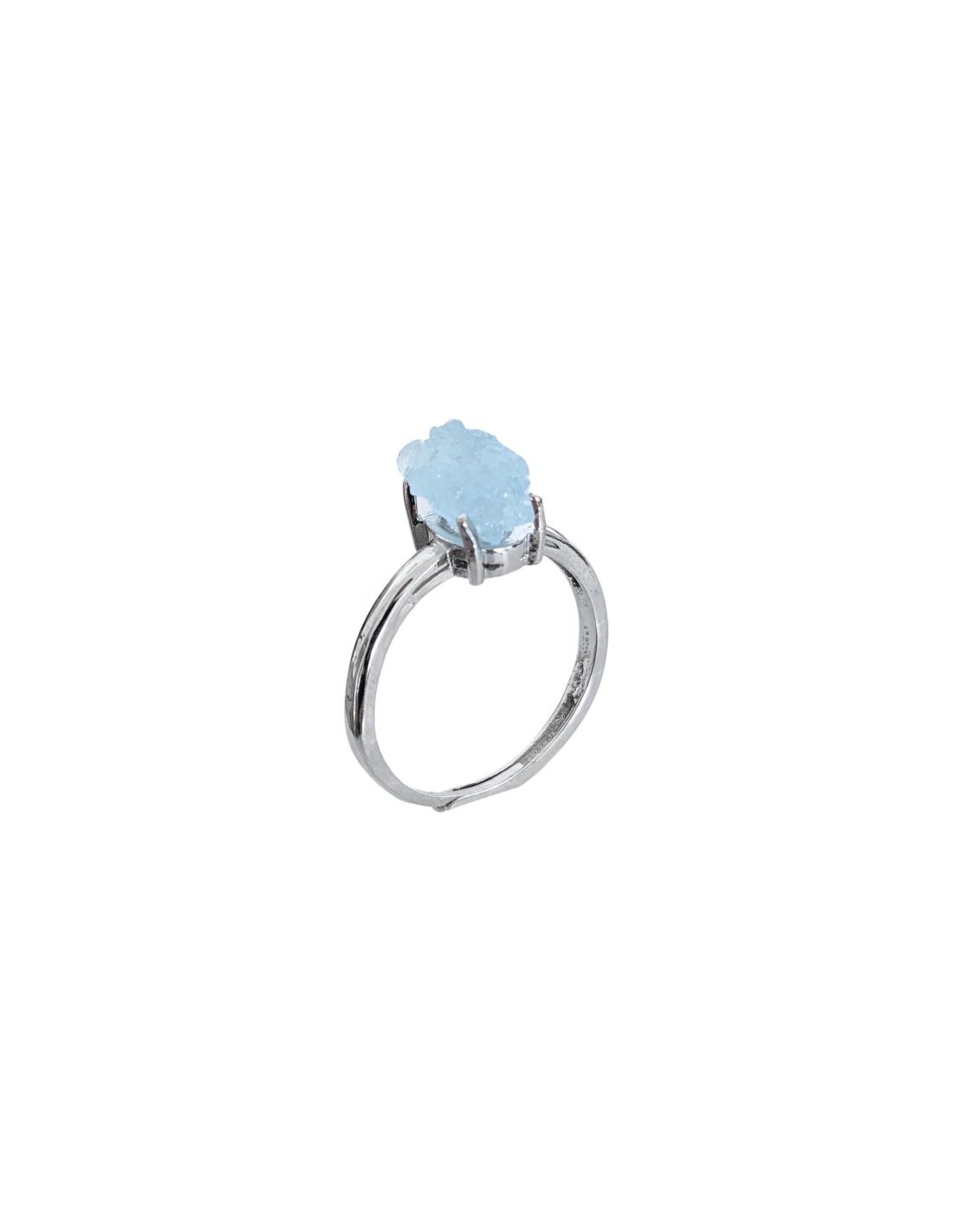 Anello con Acquamarina grezza in rame bianco