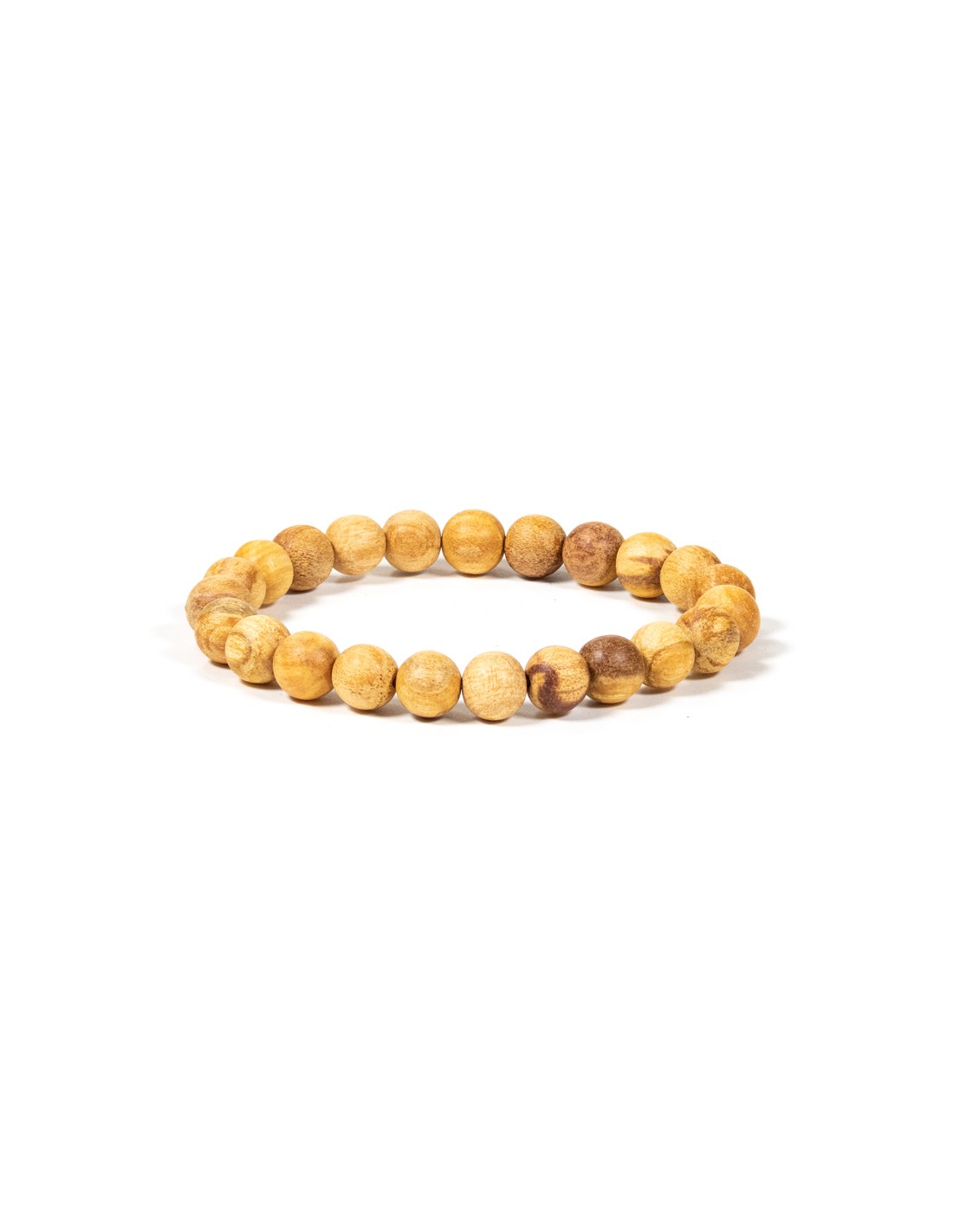 Braccialetto elastico con grani rotondi (± 6 mm), realizzato in Palo Santo raccolto in modo sostenibile.