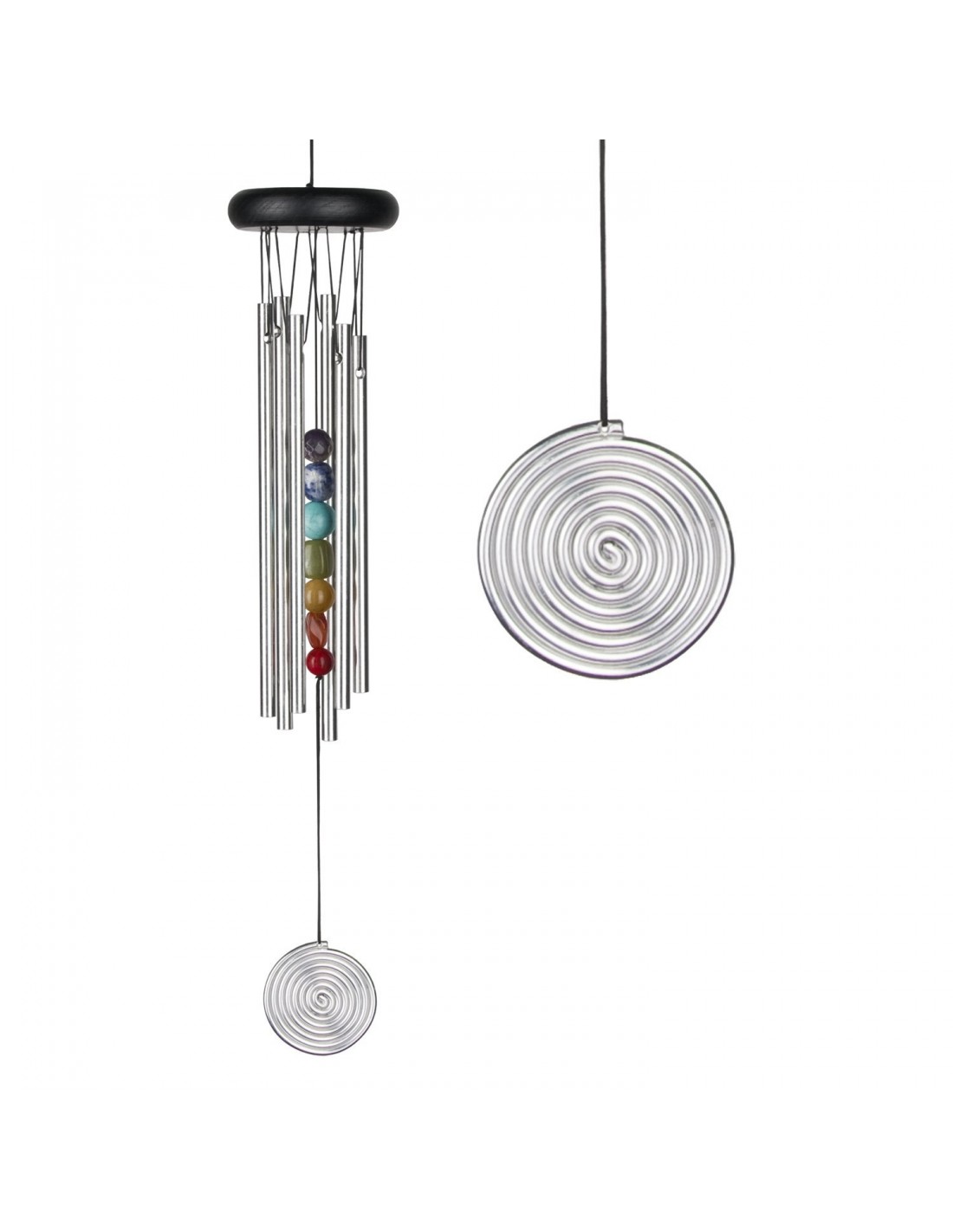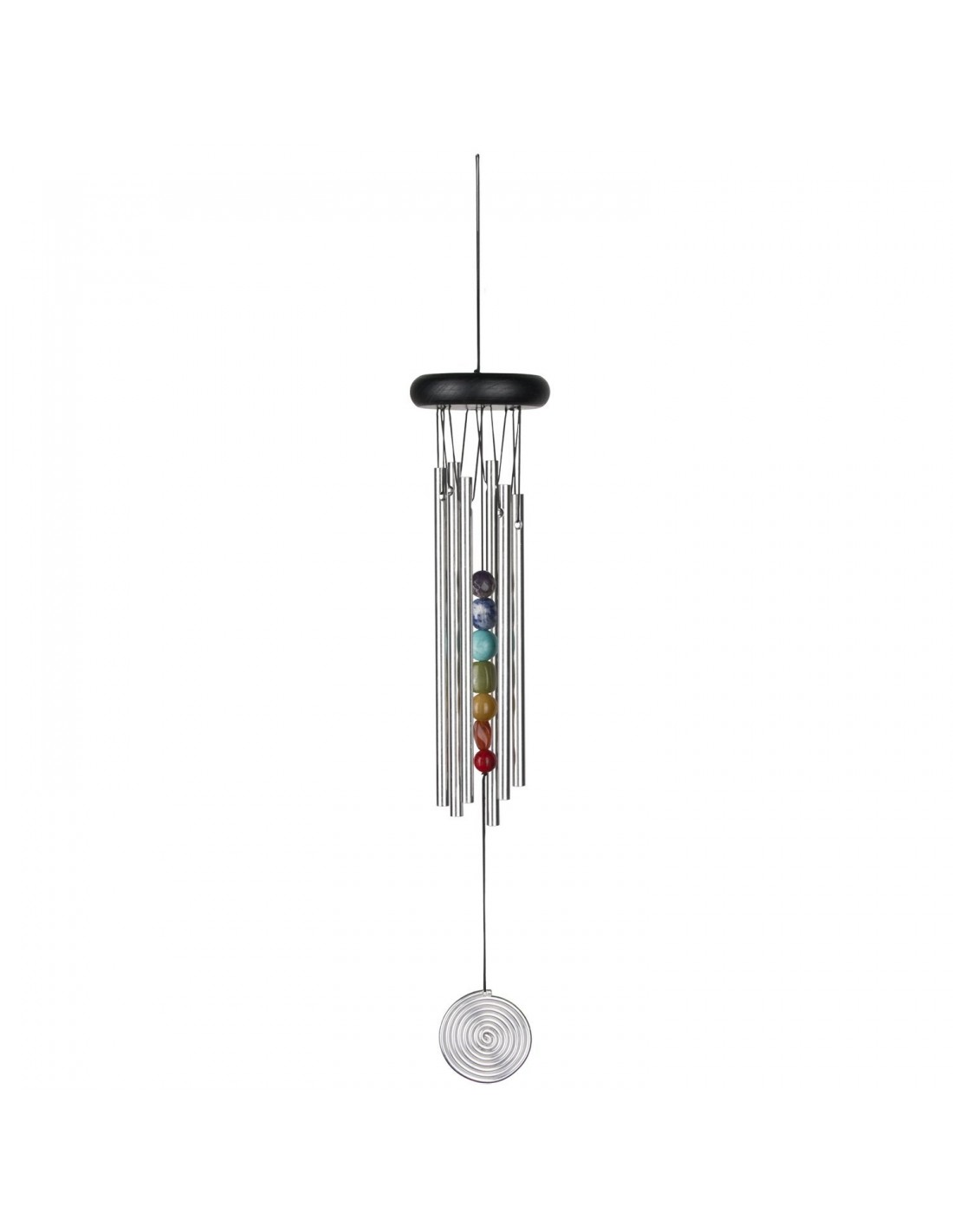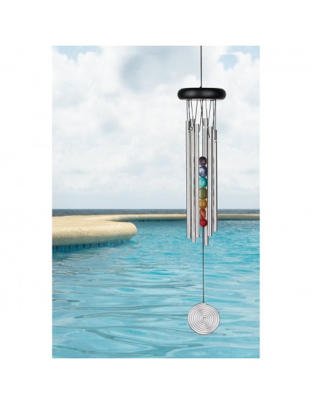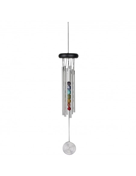 Sintonizzato sulle frequenze dei chakra, questo windchime ha anche come battente le sette pietre dei chakra.