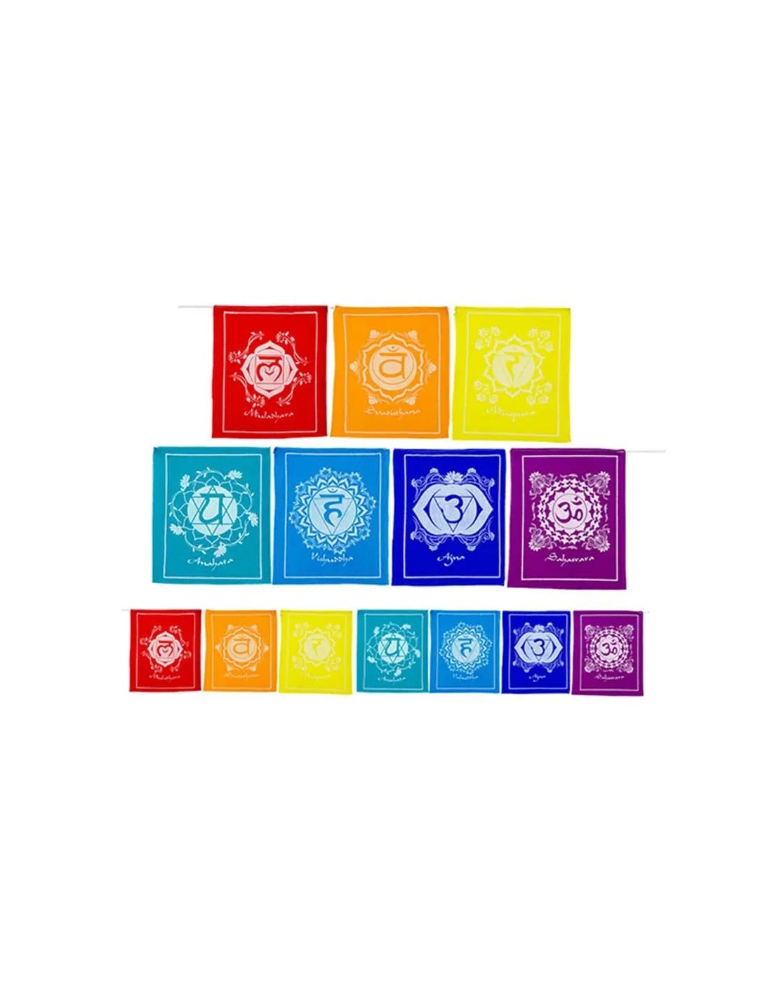 Misura di ciascuna bandierina dei chakra: 21 x 21 cm