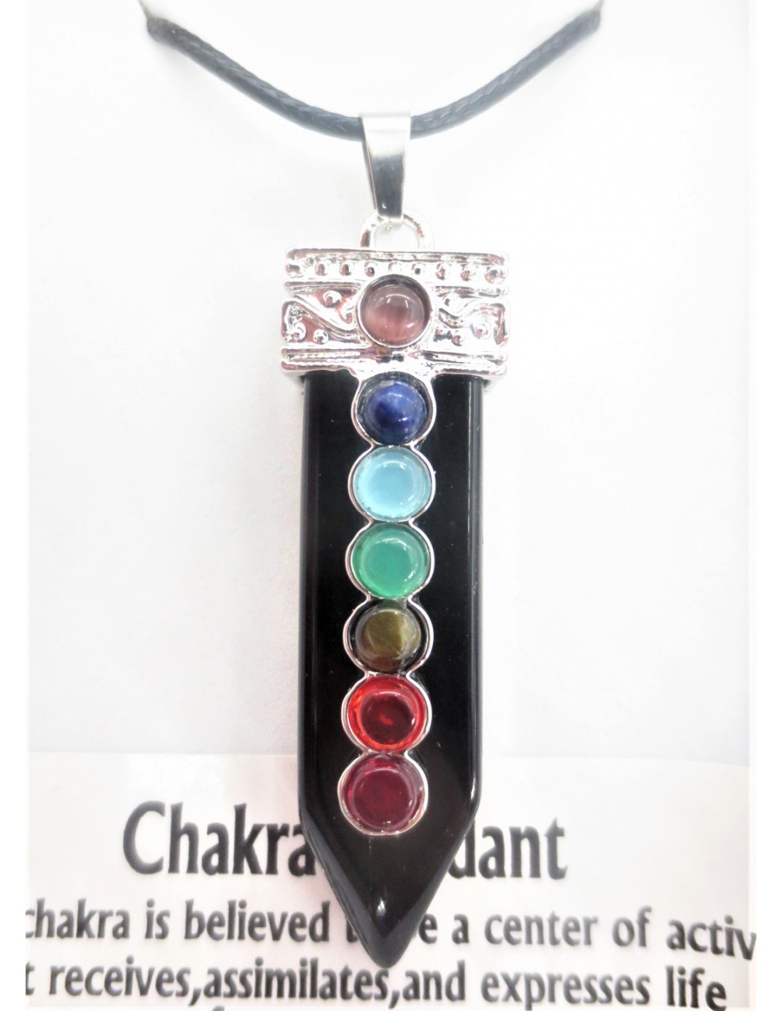 1 Ciondolo di Onice nera con 7 pietre semipreziose