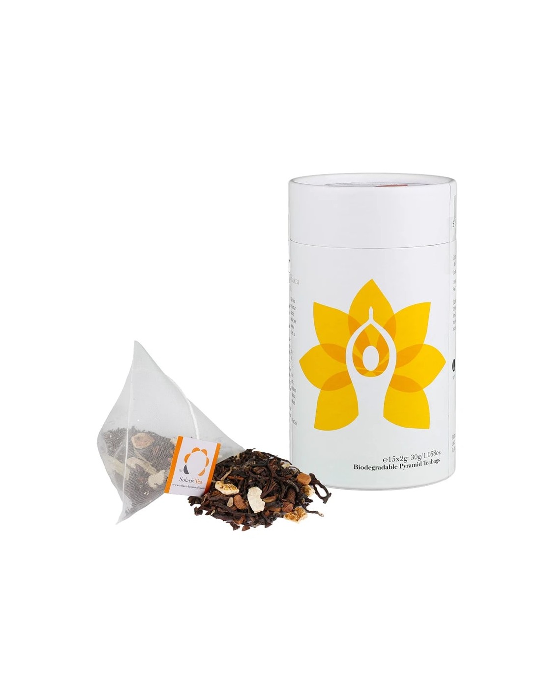 Questa miscela, stimolante, di foglie di Tè nero e autentiche spezie indiane Chai, ispirano motivazione e attività.