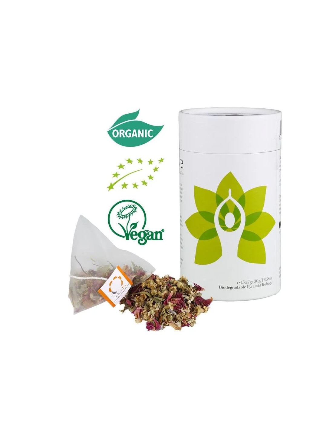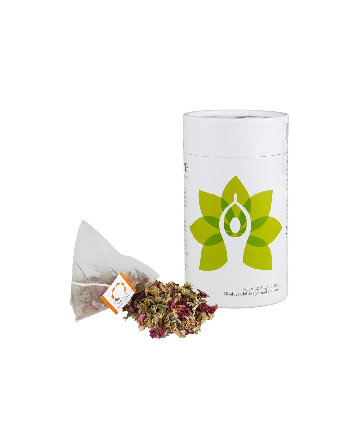 Contenuto: 15 bustine di tè a forma di piramide in contenitore cilindrico di cartone.