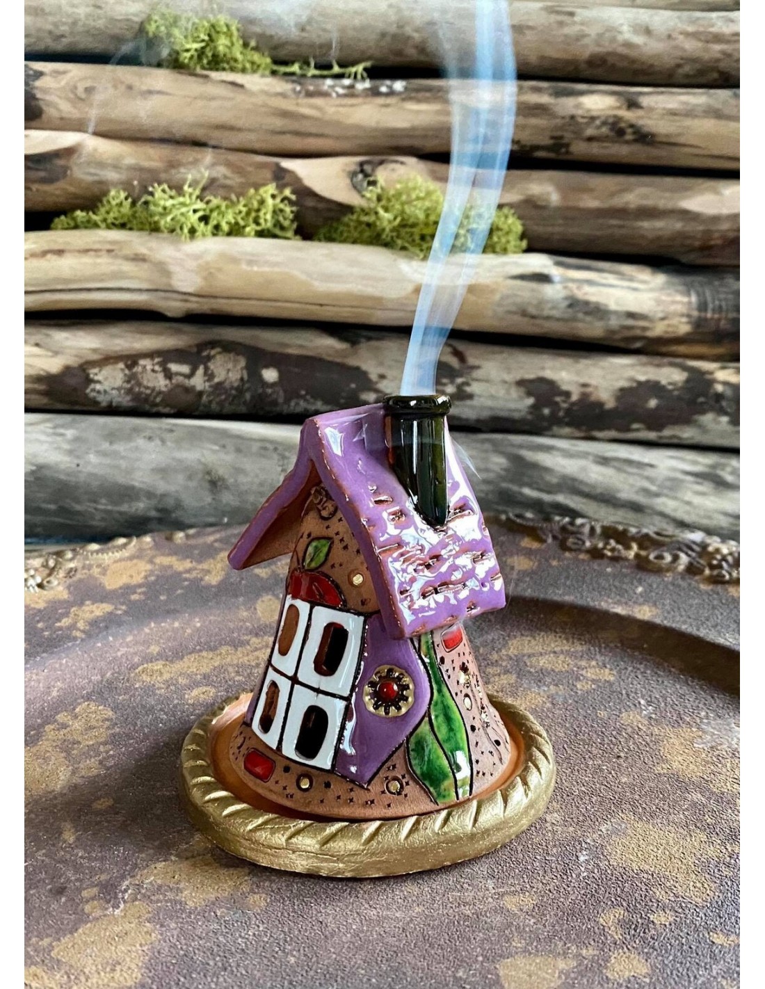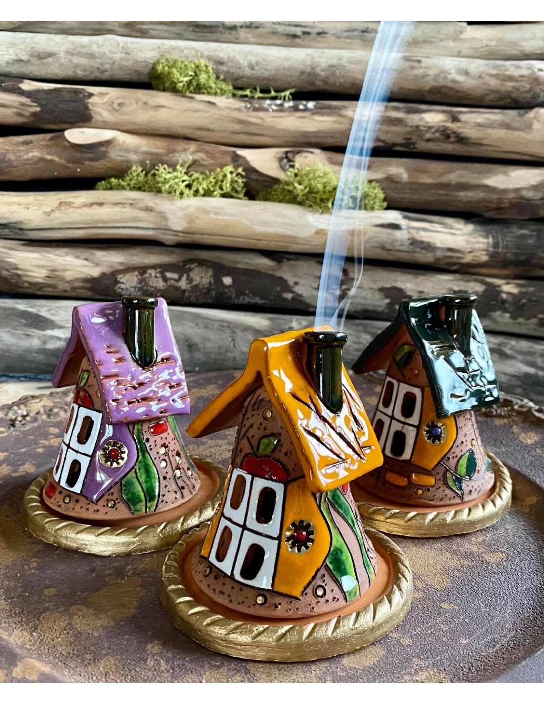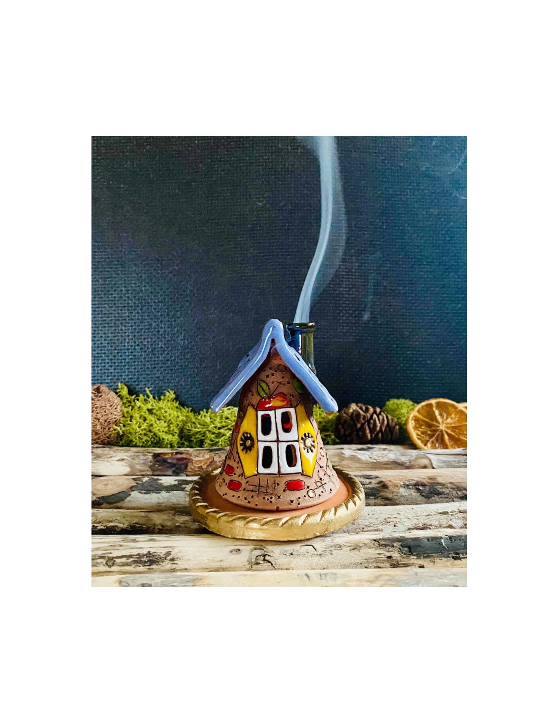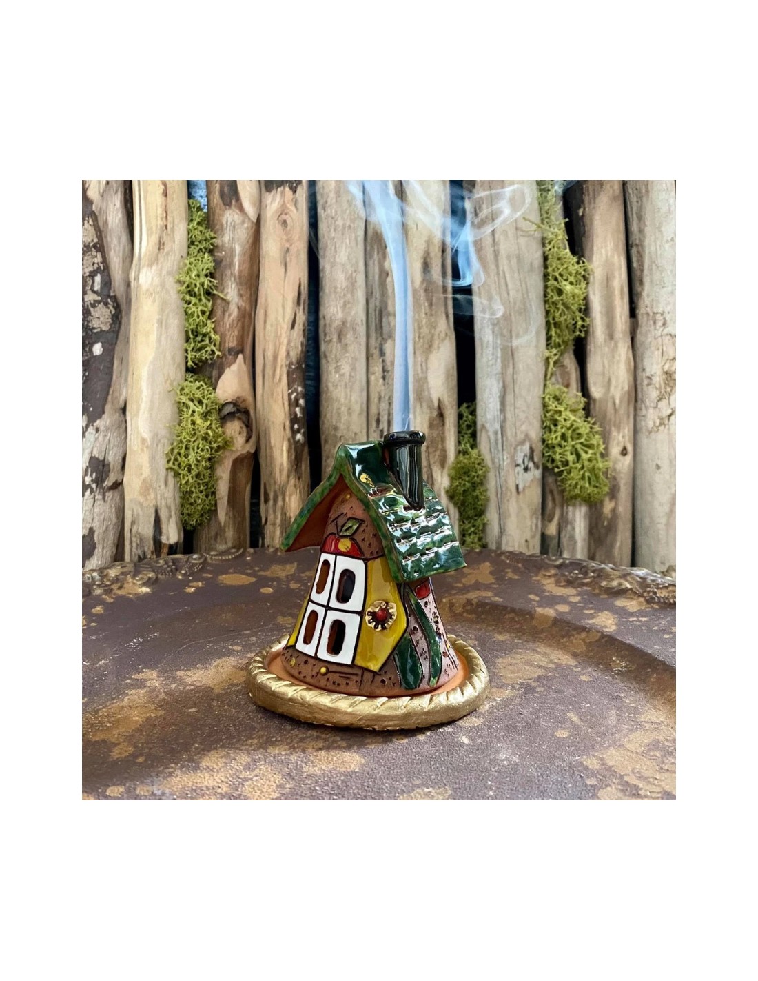 Questa simpatica casetta colorata è un diffusore di incenso a cono creato e dipinto a mano.