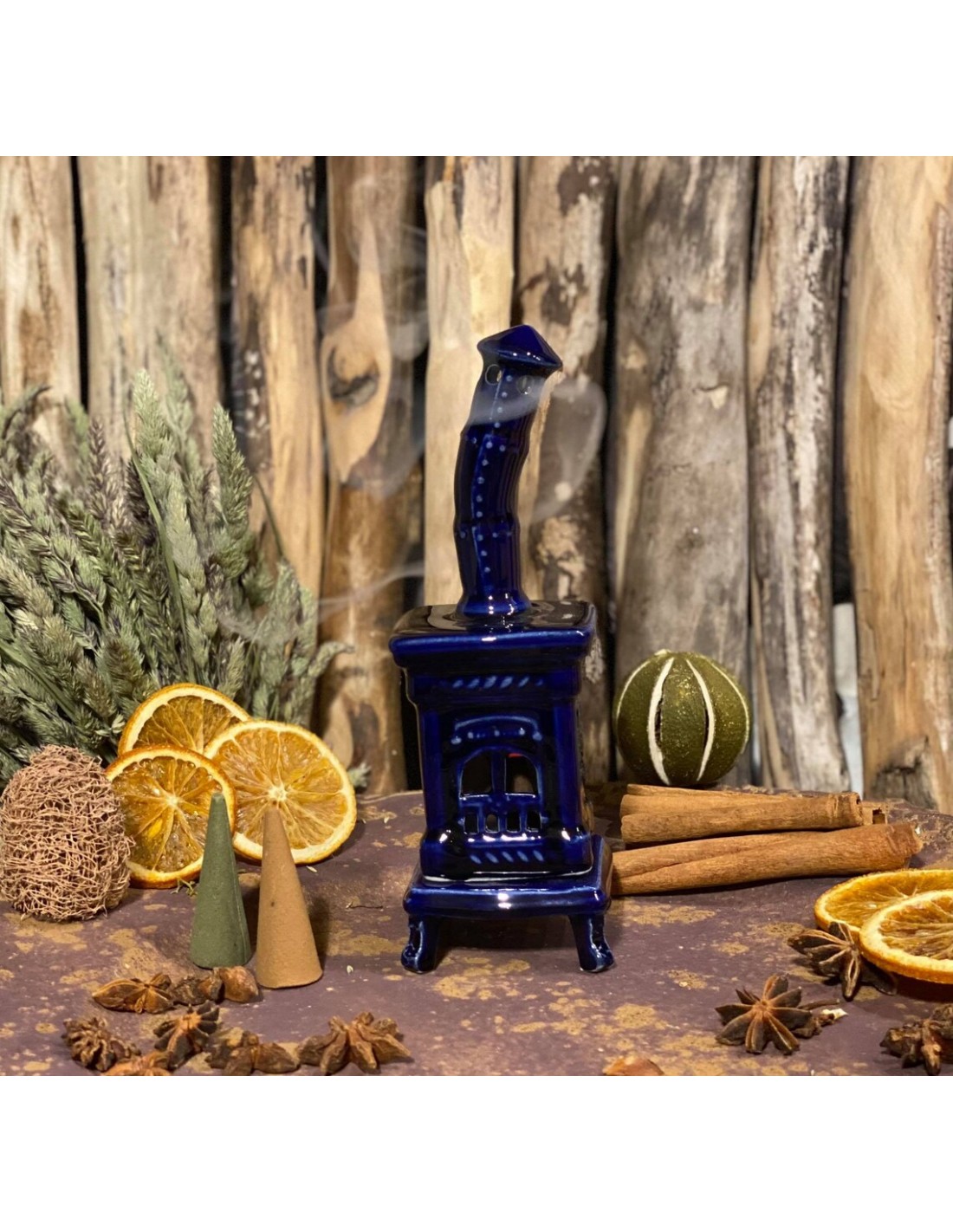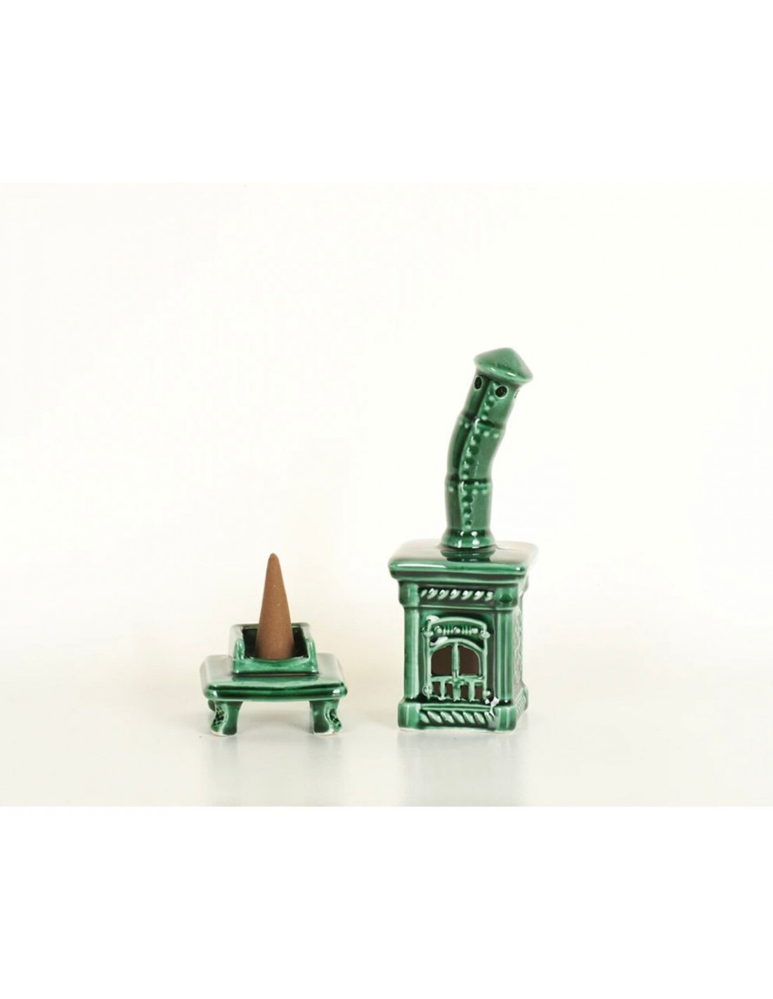 Questa simpatica stufa colorata è un diffusore di incenso a cono creato e dipinto a mano.