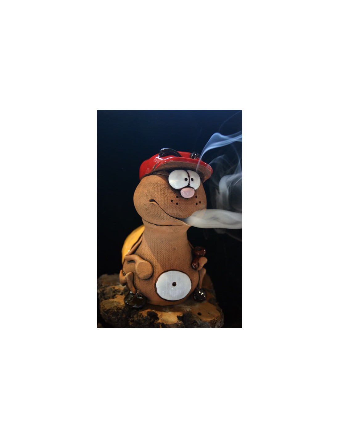 Questo simpatico diffusore d'incenso a cono è realizzato in terracotta e dipinto interamente a mano.