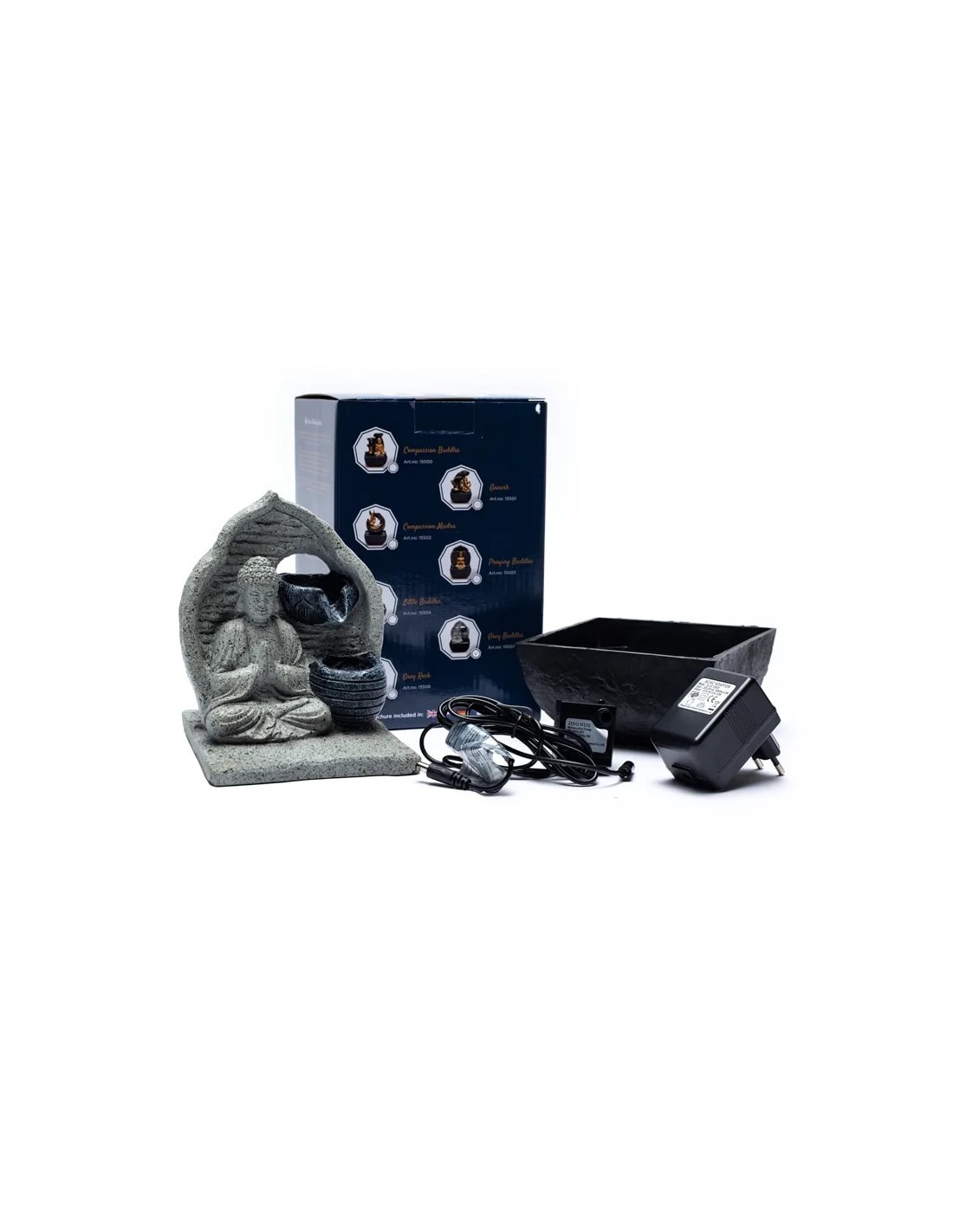 La fontana zen è solitamente realizzata in pietra o resina. A decorare questo accessorio sono spesso candele, statuine raffiguranti il Buddha oppure mistici alberi che irradiano energie positive.