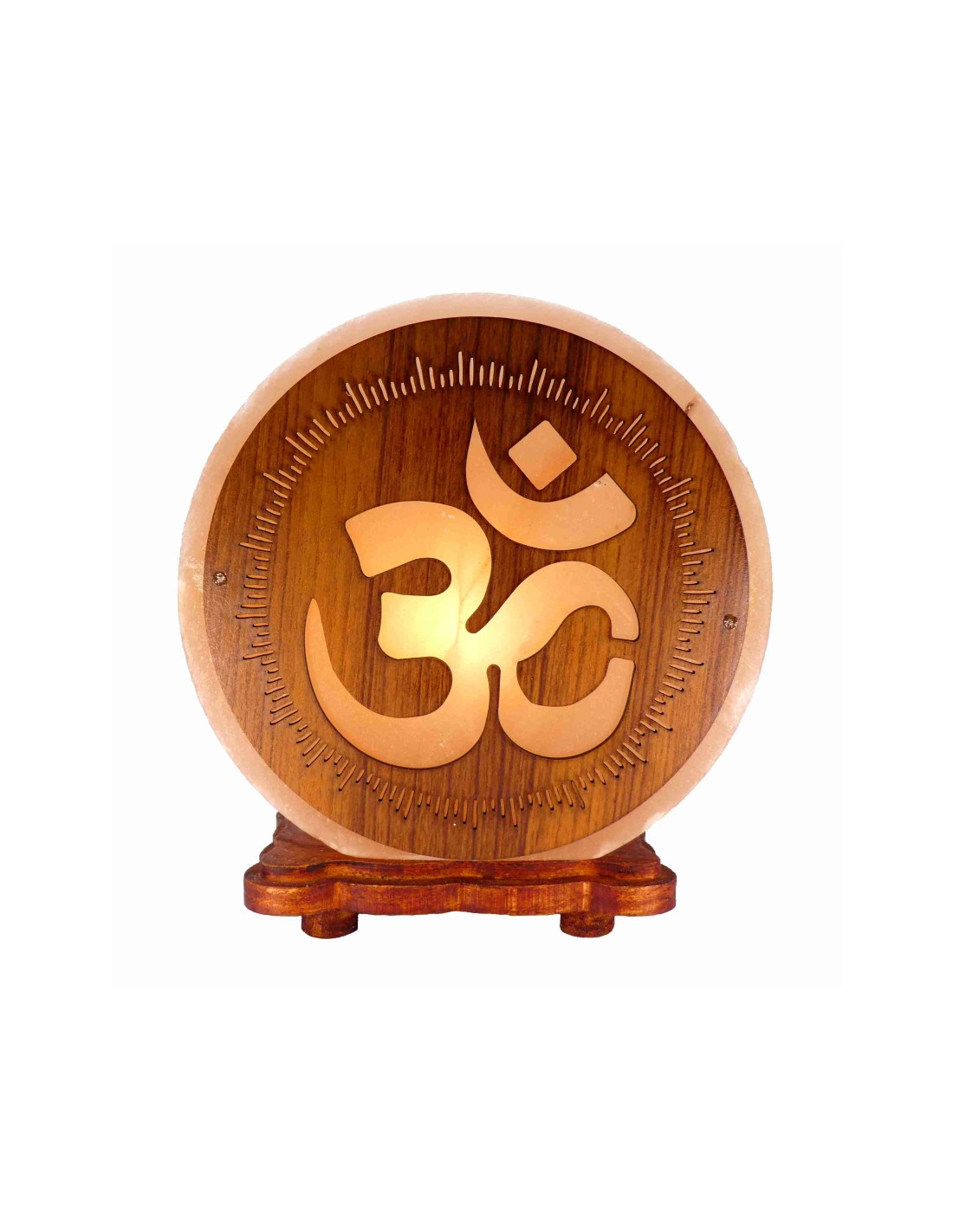 Bellissima lampada di Sale Himalayano con OM, adatta a un ingresso spazioso, un salone open-space, o per valorizzare una sala reception o uno studio professionale.