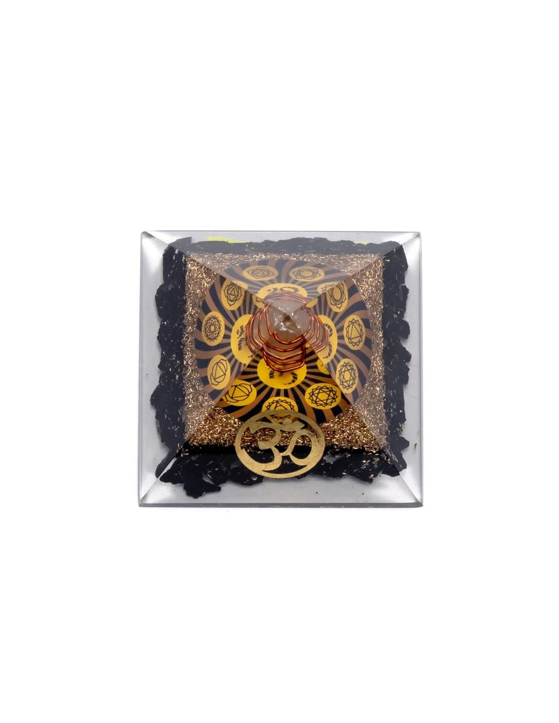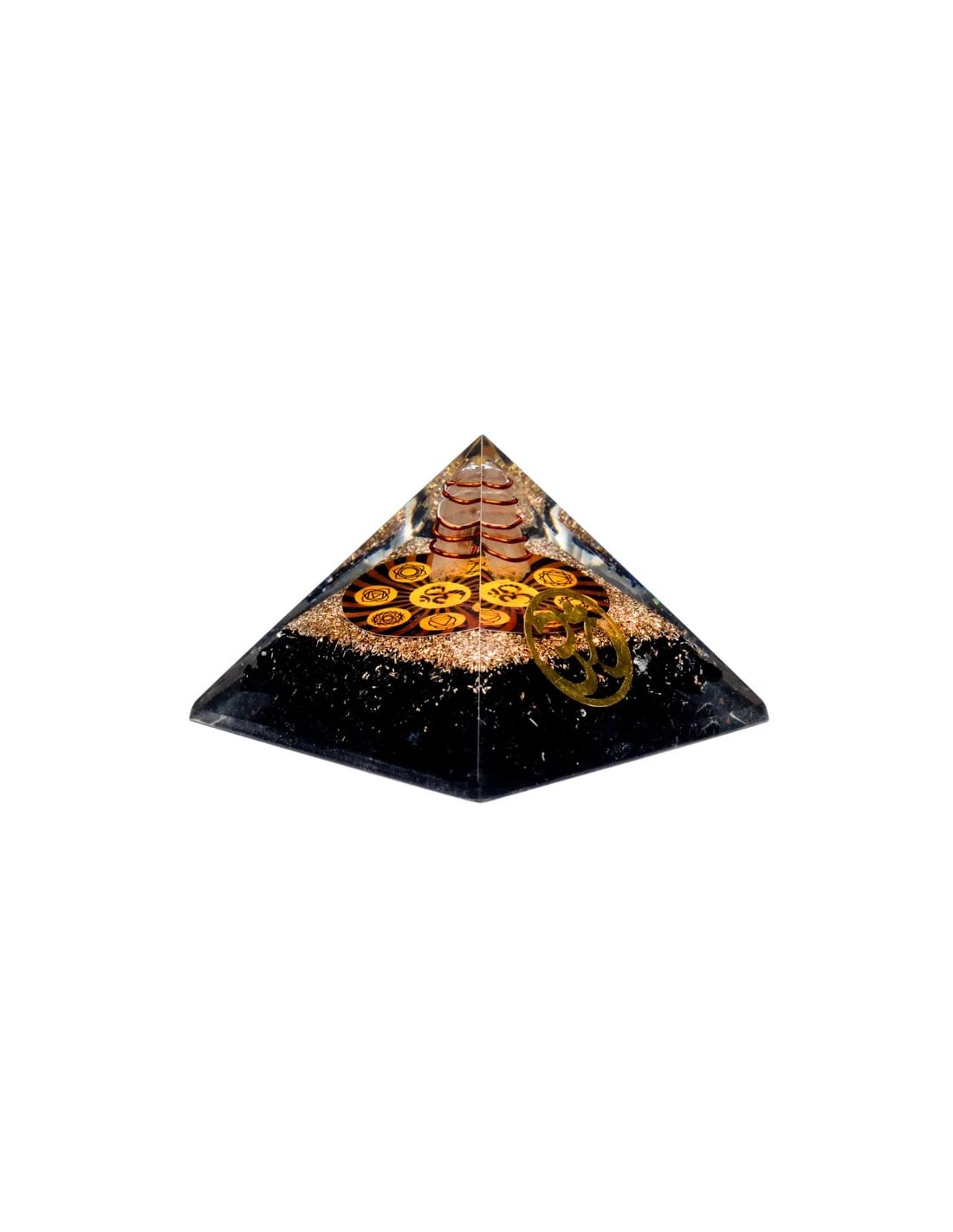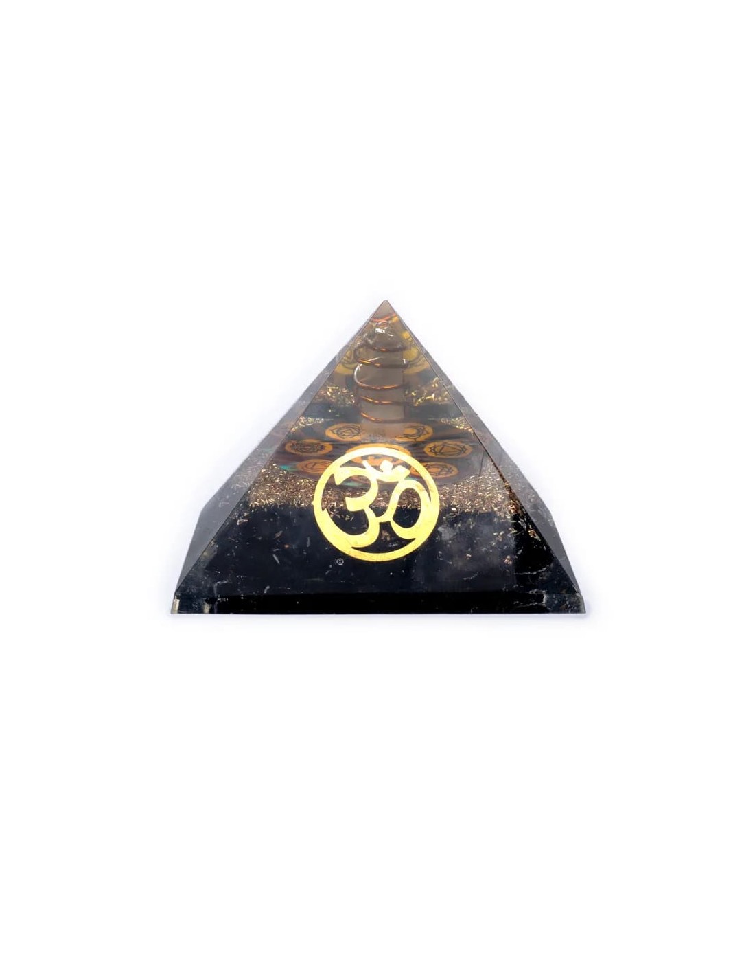 Piramide in Orgonite Chakra Tormalina nera con Om