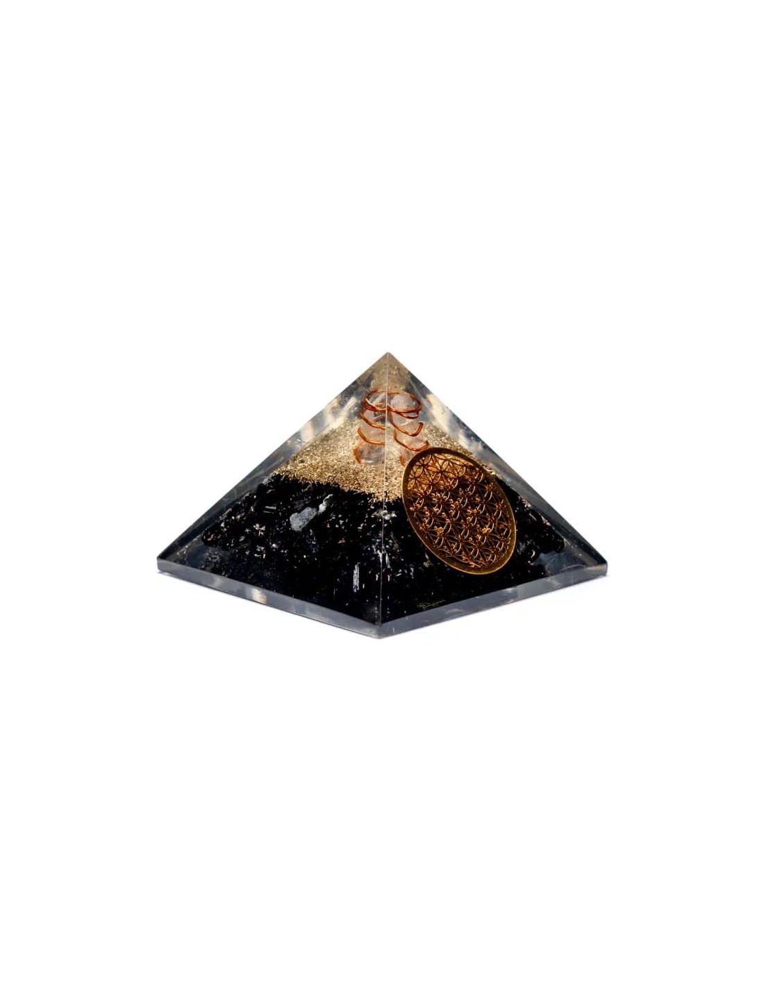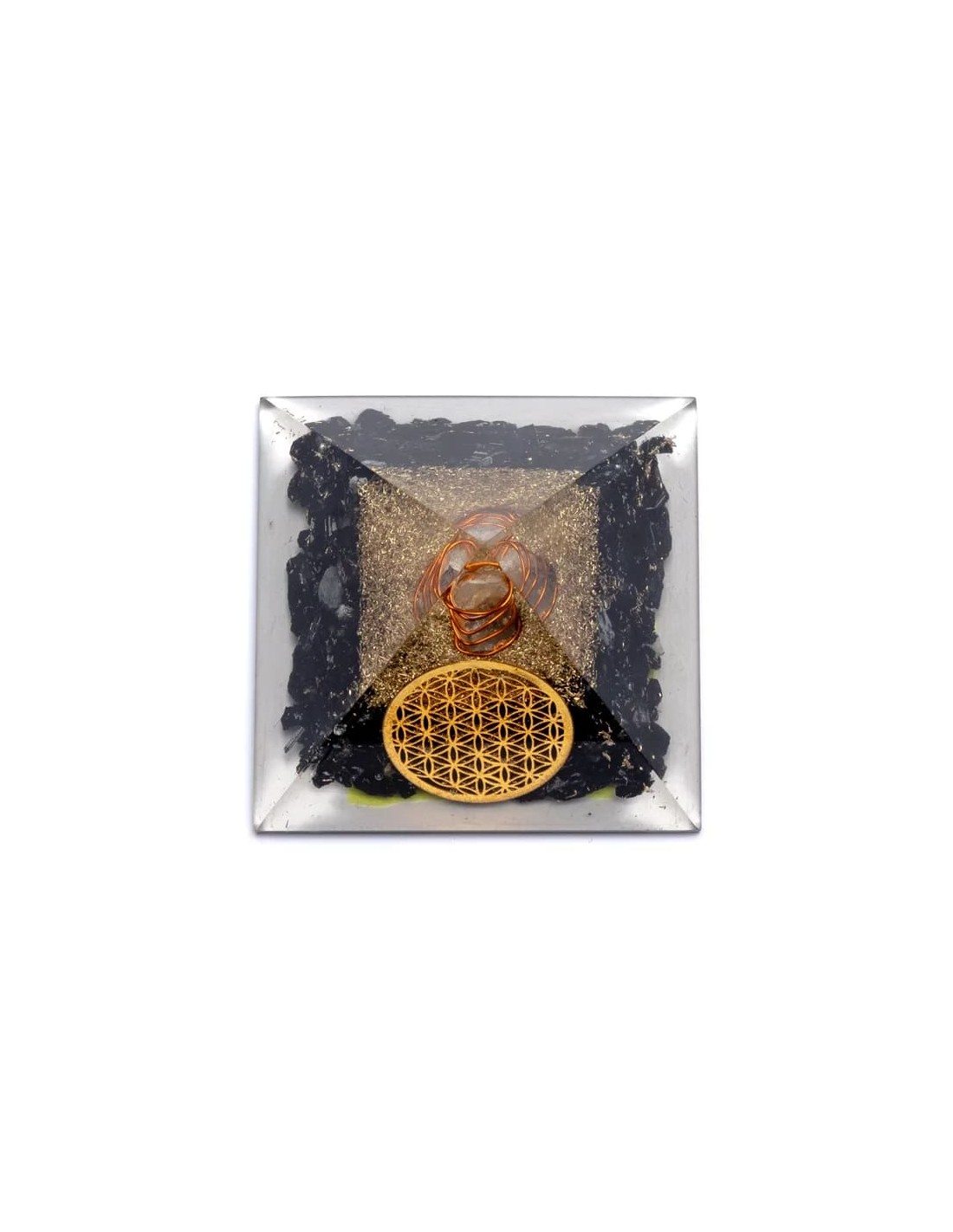 Piramide Orgonite in Tormalina nera con Fiore della vita