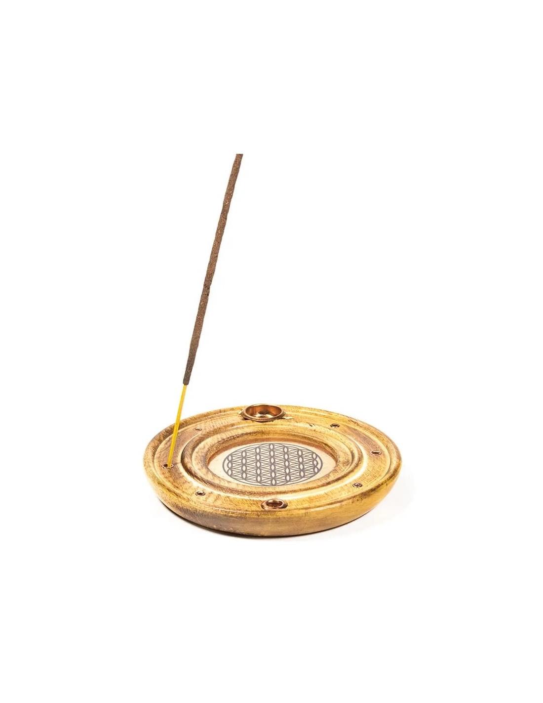 Supporto per bastoncini di incenso e coni in legno di Papri, con simbolo del Fiore della vita.