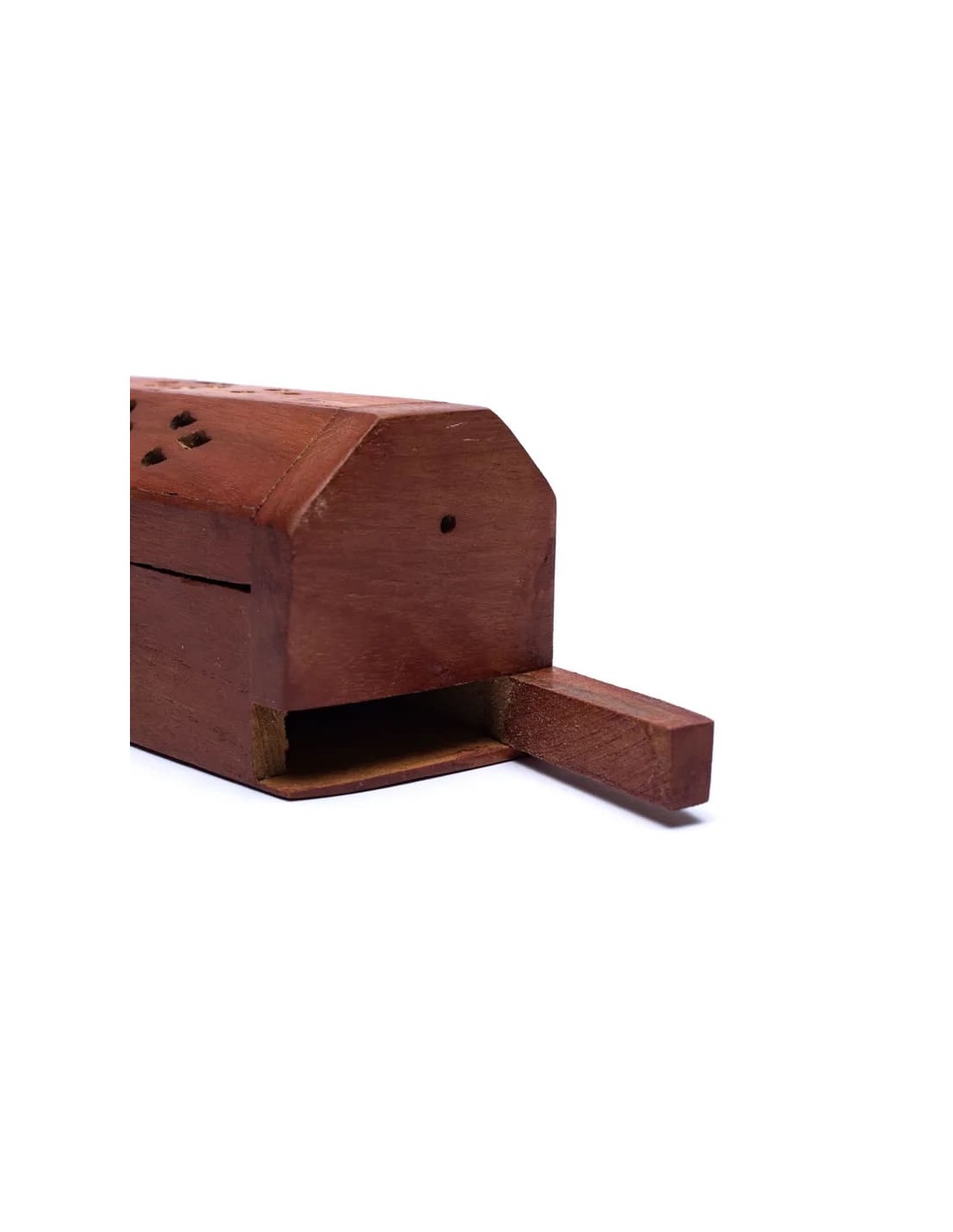 Dotato di fori per bastoncini da entrambe le estremità; man mano che l'incenso brucia, la cenere cadrà direttamente dentro la scatola.