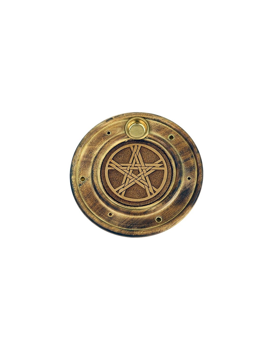 Supporto per bastoncini di incenso e coni in legno di Papri, con simbolo del Pentacolo.