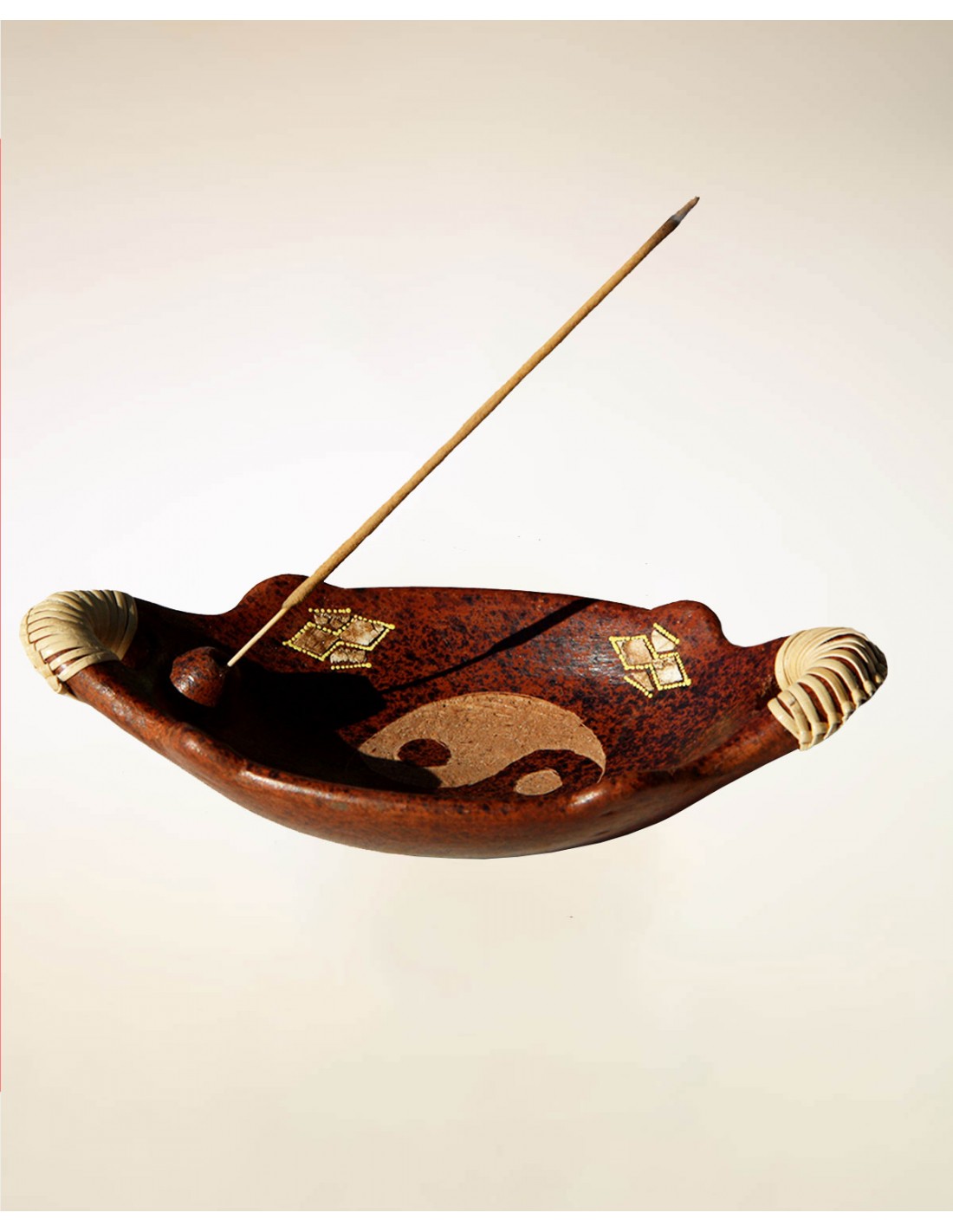 Pratico portaincensi artigianale in terracotta, lavorato a mano, da abili artigiani indonesiani.