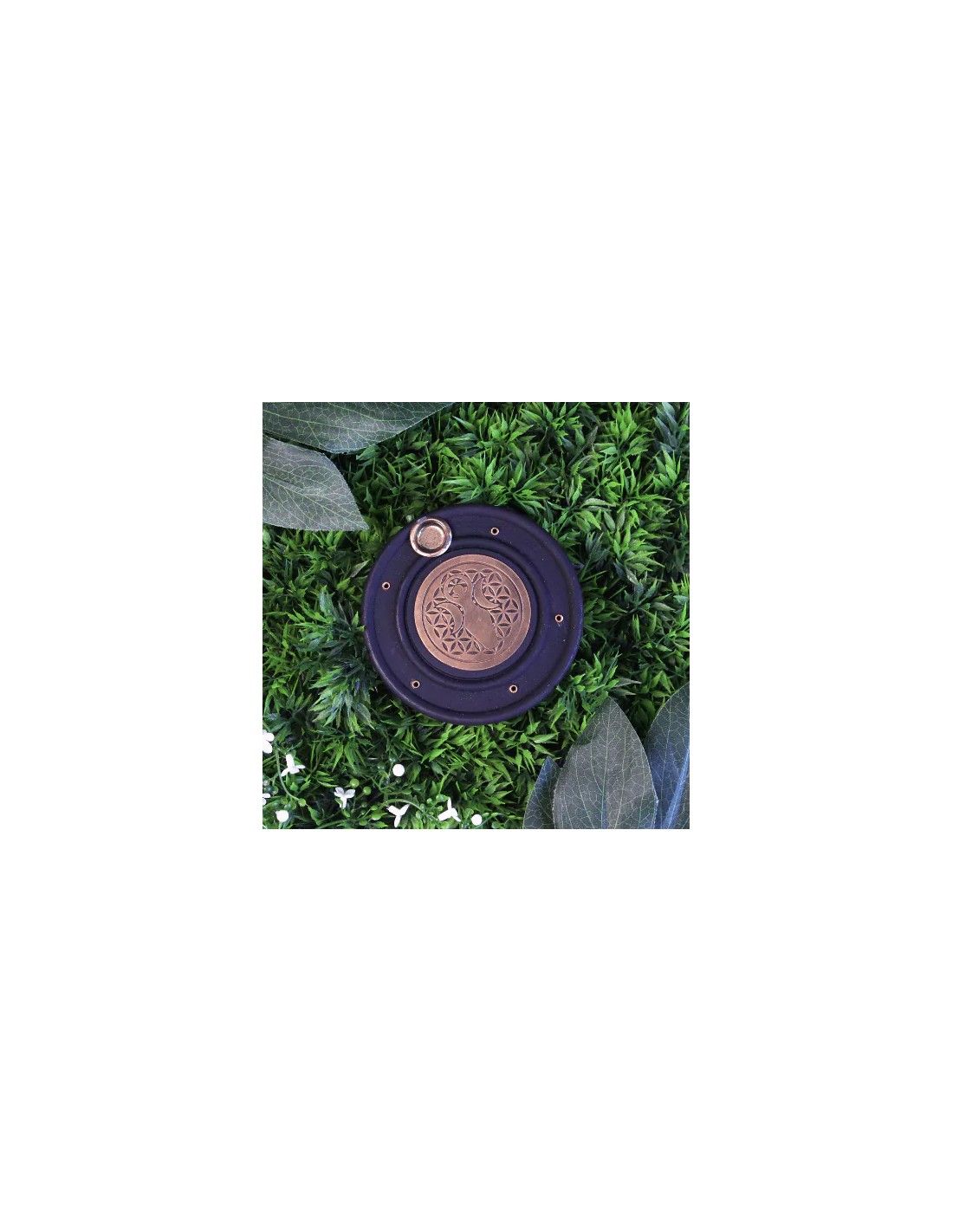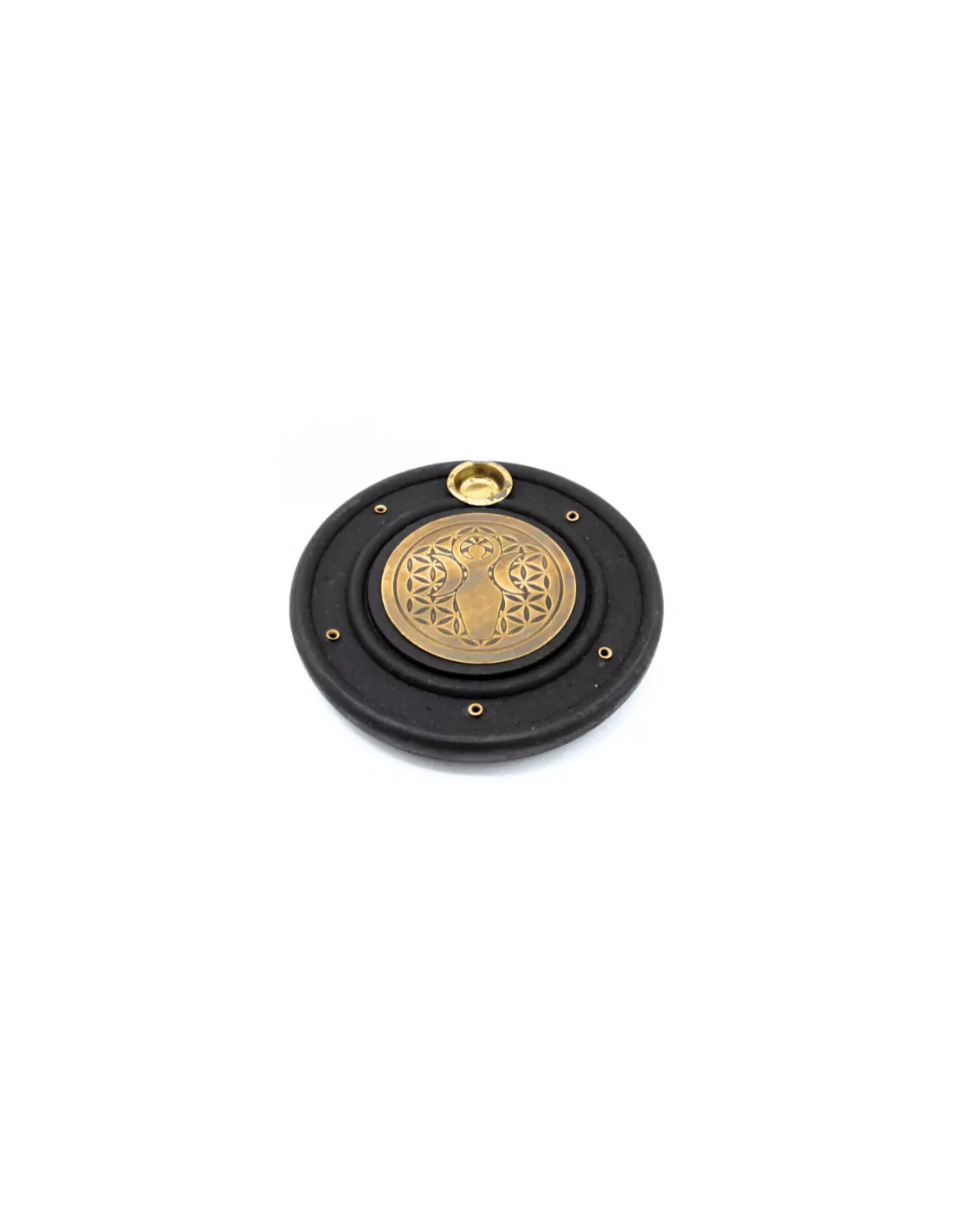 Supporto per bastoncini di incenso e coni in legno di Mango, con simbolo della Dea e Fiore della Vita