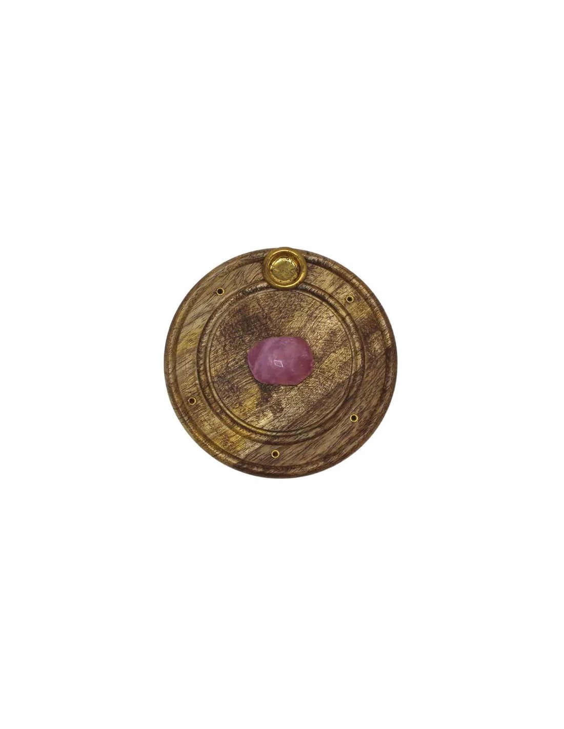 Supporto per bastoncini di incenso e coni in legno di Mango, con Quarzo Rosa