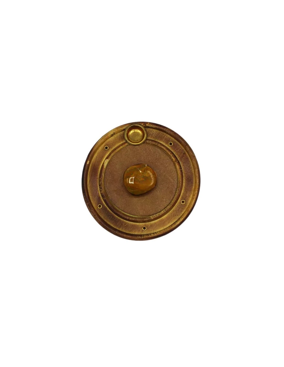 Supporto per bastoncini di incenso e coni in legno di Mango, con Occhio di Tigre