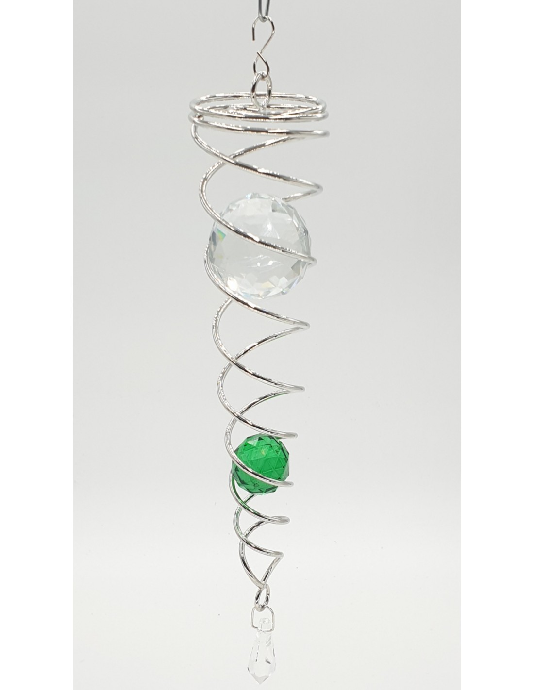 Spirale a 2 sfere Bianco + Verde con montatura Argento