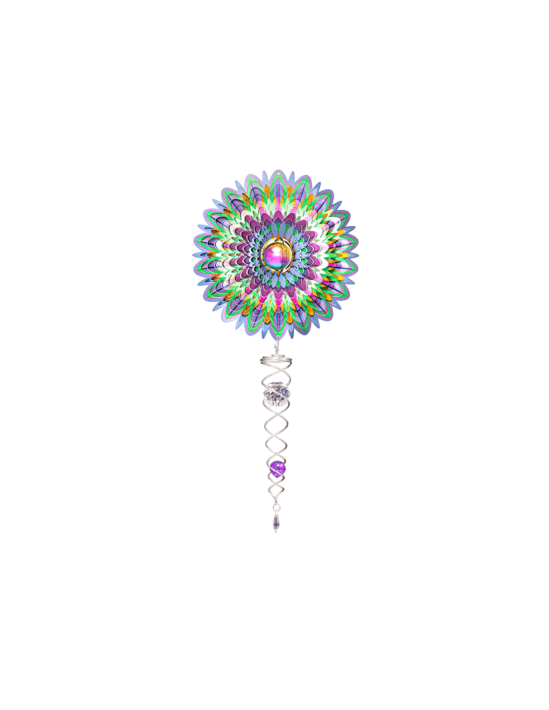 Mentre il vento fa girare lo spinner, anche la spirale inizierà a girare, producendo incredibili illusioni ottiche con le sfere di cristallo abbinate.